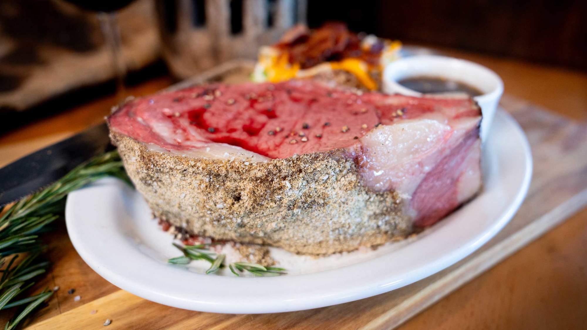 Back to Top of ListThe Grub Steak is a Park City staple and has you covered if you’re craving classic, no-frills comfort. Known for its cozy log cabin vibes and laid-back atmosphere, this long-standing local favorite specializes in one thing that keeps guests coming back for more—its 18-hour prime rib. Slow-cooked to perfection, this juicy, tender cut of beef practically melts in your mouth. It’s served alongside comforting, hearty sides like potatoes and steamed broccoli with Hollandaise.
