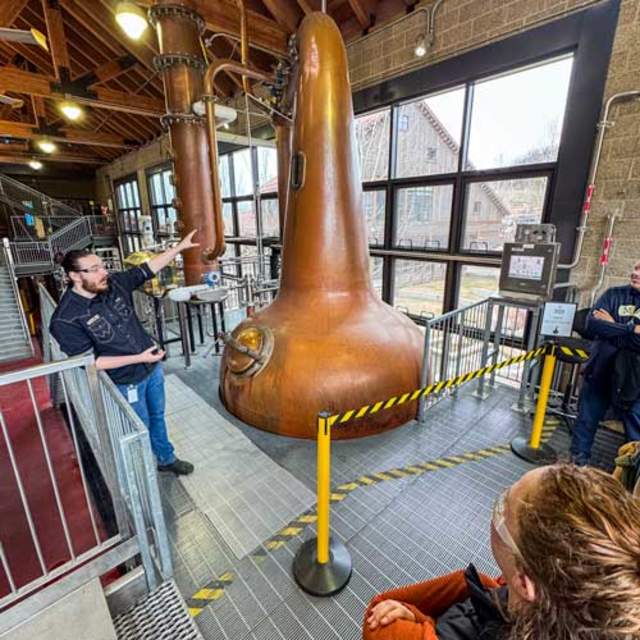 The full experience runs about one hour and 45 minutes: roughly an hour on the production floor, followed by time in the Whiskey Library for the tasting. Grab your safety glasses at the start — you’ll need them on the distillery floor. And book in advance. This one fills up.